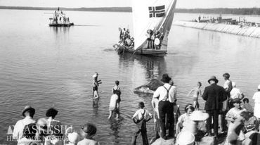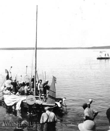 "Harry made Waskesiu a family holiday resort. I can remember in about 1936 or 1937 being in one of Harry's pageants, where he restaged Wolfe's battle with Montcalm on the Plains of Abraham. I was one of Wolfe's fearless soldiers. Our shirts were dyed red and we wore red cloth tied to a band around our heads. We had muskets crafted by the Park carpentry shop and we set sail in the Nanette II from the site of the beached Nanette I to travel to the cliffs of Abraham, represented by the high shore bank at what is now the site of the second and largest breakwater.