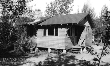 Parks Canada records confirm that, “The development of another bungalow camp known as Kapasiwin Bungalows was undertaken by J.E. Mitchell of Prince Albert in 1948. Located about two miles north of the business section of Waskesiu Townsite … on the Heart Lakes road, the site commanded a fine view of Waskesiu Lake. By 1949, Mitchell had erected 20 cabins and qualified for a long term licence….Later, he added 15 more cabins and a manager’s residence to the development. On the death of the licensee in 1972, the leasehold title and operation of the camp was taken over by his widow, Della L. Mitchell.”