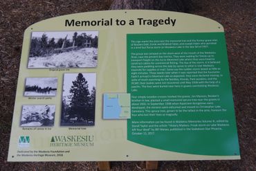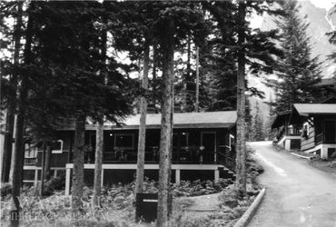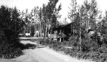 Because of a tragedy on Waskesiu Lake in 1927, there were four graves located on the bank here before Kapasiwin was built. You can learn more about this tragedy, the graves, the memorial tree, and the commemorative sign at the Museum website.