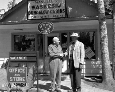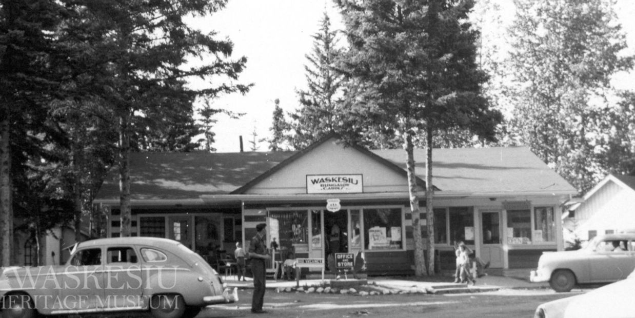 Manville’s or Baker's Store, now called The Waskesiu Market or The Market, has always been marvelous to visit. As well as housing the registration office for the cabins, there once was a full service restaurant. The lunch counter offered a quick bite to eat too. The coolers offered dozens of flavours of ice cream and staff waited patiently to hear young customers’ choices. The grocery store managed to carry all the necessities for any taste, from baking ingredients to BBQ supplies and fresh fruit to bakery bread. The hardware section contained items to fix plumbing or electrical problems in both cottages and holiday trailers. The camping gear and beach toy section was fascinating. Parents could spend time browsing in the fishing gear while children perused the candy section. At one time, part of the building housed The Sandbox, a popular clothing store. A variety of souvenirs were available along with a selection of newspapers, magazines, and pocket novels too. The store was a one-stop shopping experience for the whole family.