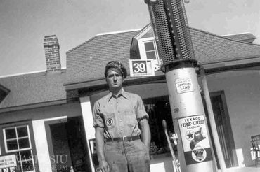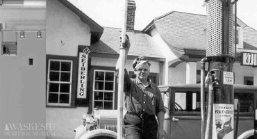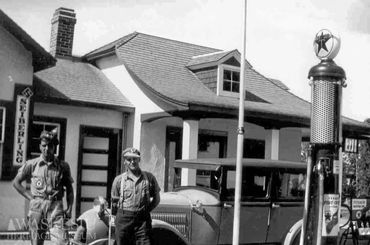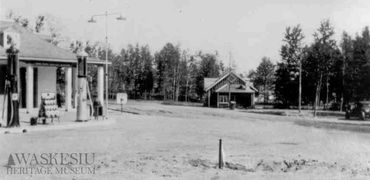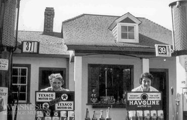 One of three full service stations in the townsite, the Texaco was built in the 1930s. Staff posed in the early years in the photo gallery below.