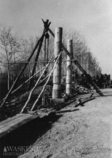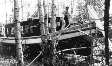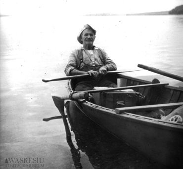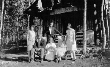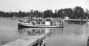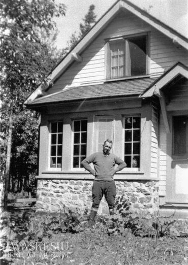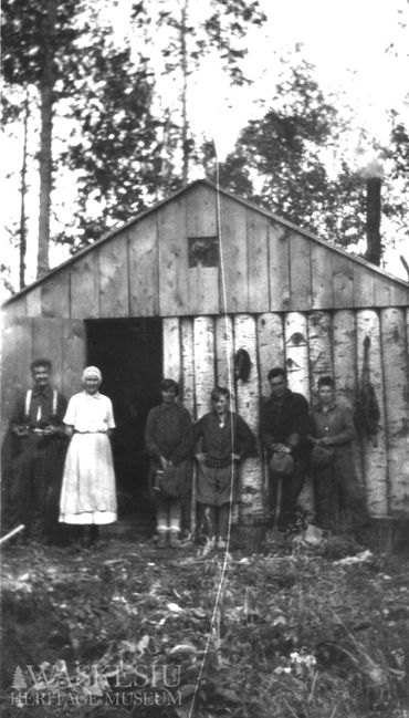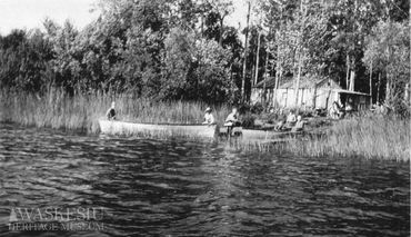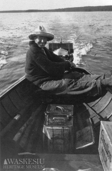 Pioneers George and Elizabeth Pease lived in this area before it was declared a National Park. They camped on the shore of Waskesiu Lake, then known as Red Deer Lake, in a rustic log cabin called Shadirest. Although this was their main home, they had cabins and camps on other lakes in the region that they travelled to seasonally netting fish and taking it to Big River to sell. Elizabeth kept a diary during the winter of 1927-8 that chronicles their difficult and dangerous daily life travelling to fish other area lakes. (A copy is available in the Museum.) Beginning in 1926, George built and rented boats from the shore of Waskesiu Lake, known in the early '20s as Primeau's Landing.