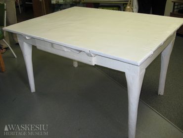 George Pease was a gifted carpenter. In audio clip below, you can hear outdoorsman and relative Jack Mackenzie reminiscing about George’s talent. George built wooden rental boats with the help of his son Alex and Harold Beck who had originally worked in PANP in the Depression relief camps. He also built both the Nanette I and II, larger boats that took groups on tours and excursions. The table mentioned in the clip is in the Museum. Unfortunately, we do not have his wooden teeth!