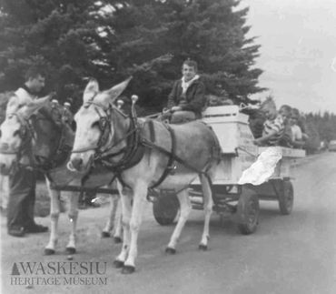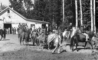 The Waskesiu Riding Stables figure large in the memories of many people who enjoyed horseback riding during their holidays in Waskesiu. Started by Paul Manegre in1952, this business operated for 45 years by three generations of the family. Originally on the site of the current Fire Hall, the stables relocated to the location where Lost Creek Resort is now and also spent a couple of years at McPhee in the 1980s. The former barn floor now serves as a large patio at Lost Creek Resort. For many years, a pony wagon toured the townsite, picking up youngsters along the way and dropping them back at the same spot. Paulette (Manegre) Buekert drove the wagon as a young person and later owned and managed the stables.